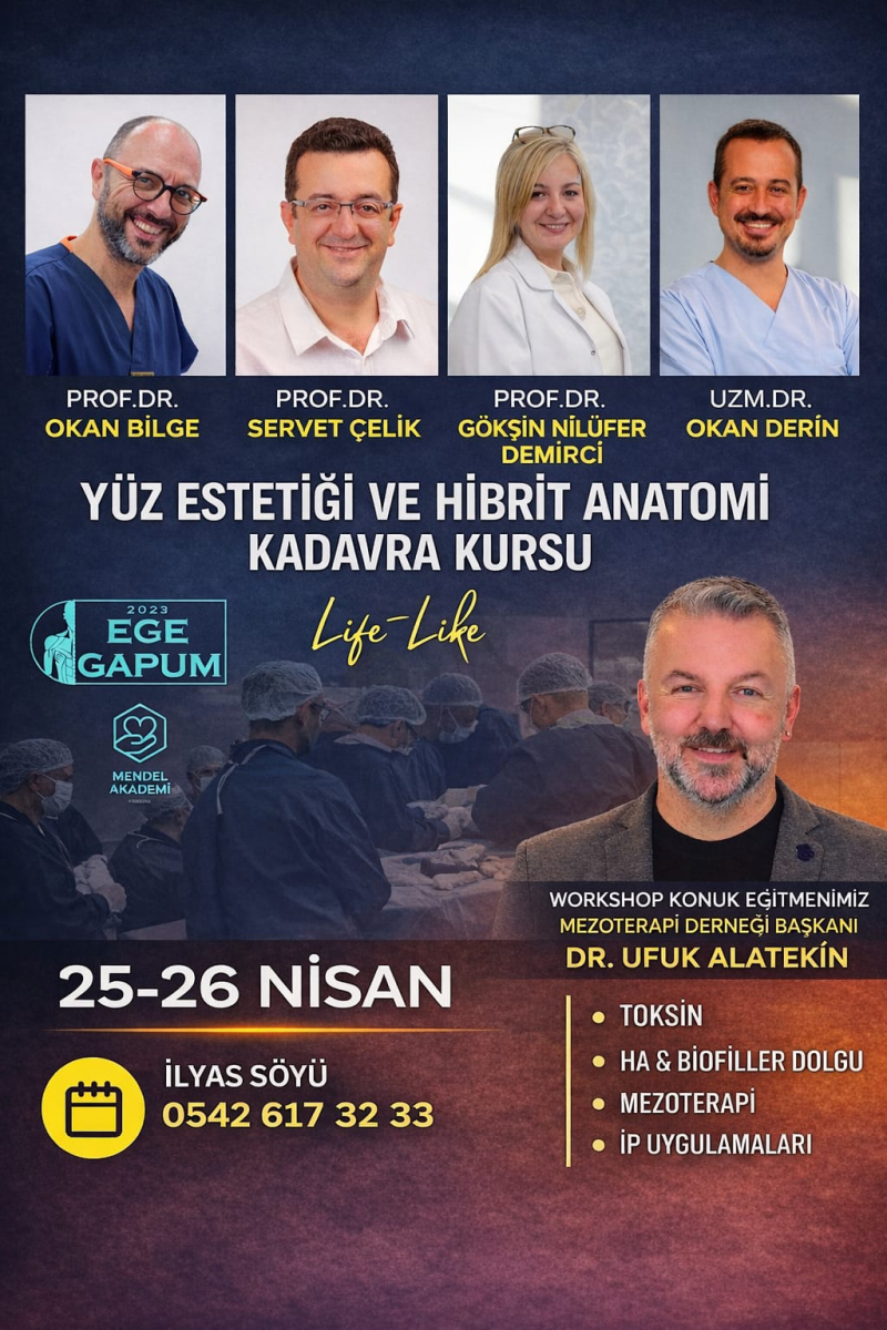 25-26 Nisan 2026, Yüz Estetiği Hibrit Anatomi Eğitimi, Life-Like Kadavra Kursu, EGEGAPUM & MENDEL Akademi
